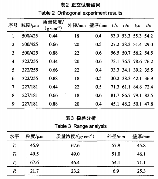 主軸轉(zhuǎn)速為2500rpm,軸向壓力為780N時,采用正交分析法獲得的試驗結(jié)果 ,如表2所示 。其中t、t2-,t、、t分別代表3次鉆孔的時間及平均時間。對表2的正交試驗結(jié)果進行極差分析 ,獲得的計算結(jié)果 ,如表3所示 。其中 ( l、2、3)為各因素的 1、2、3水平試驗結(jié)果之和的平均值 ,R為極差 。 從表3可以知道 ,電鍍金剛石鉆頭的結(jié)構(gòu)參數(shù)對碳化硅陶瓷孔加工效率的影響程度為:壁厚>濃度>粒度>外徑 ,鉆頭的壁厚對孔加工效率的影響最大,外徑對其影響最小 。因素最優(yōu)水平組合為鉆頭壁厚 0.4 mm、金剛石磨粒的質(zhì)量濃度 0.88g/cm 、粒度500/425 m、鉆頭外徑20mm,此時碳化硅陶瓷的孔加工效率最高。圖3為電鍍金剛石鉆頭的結(jié)構(gòu)參數(shù)對碳化硅陶瓷